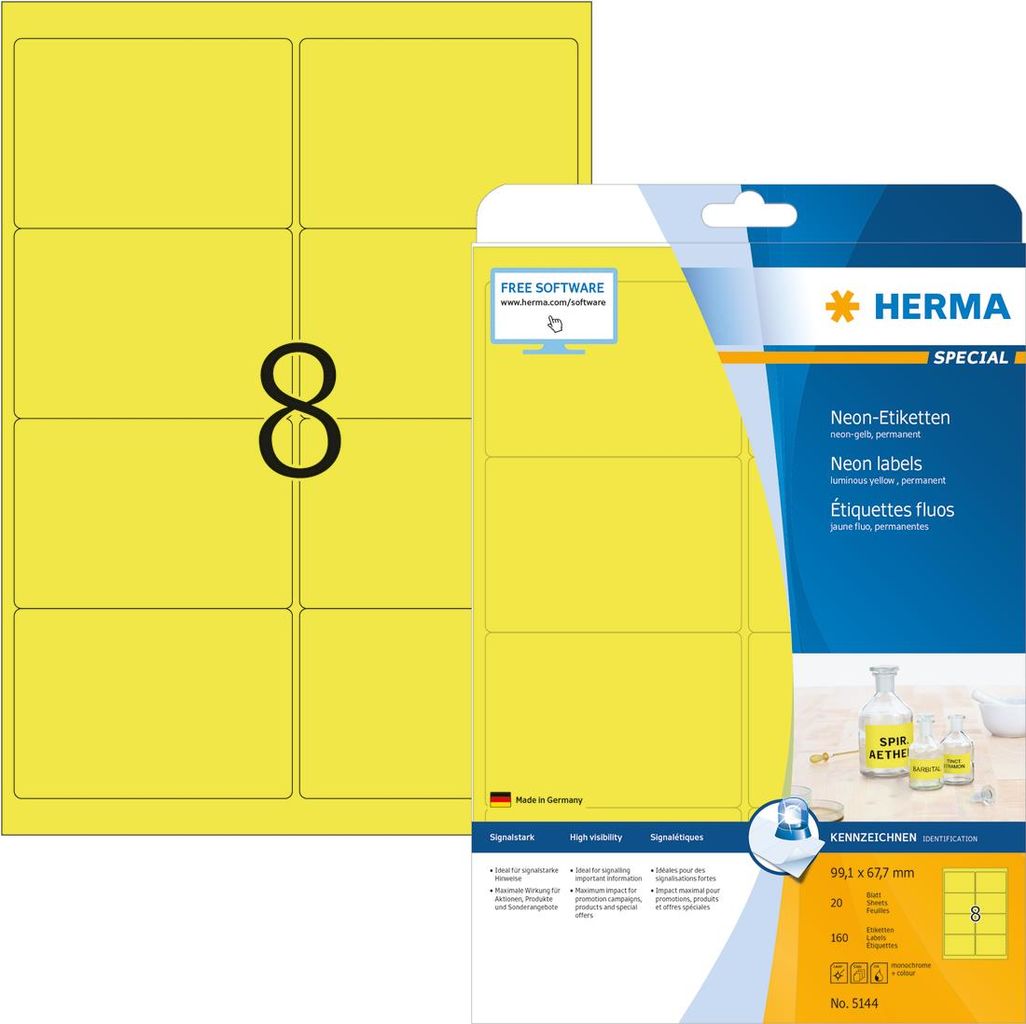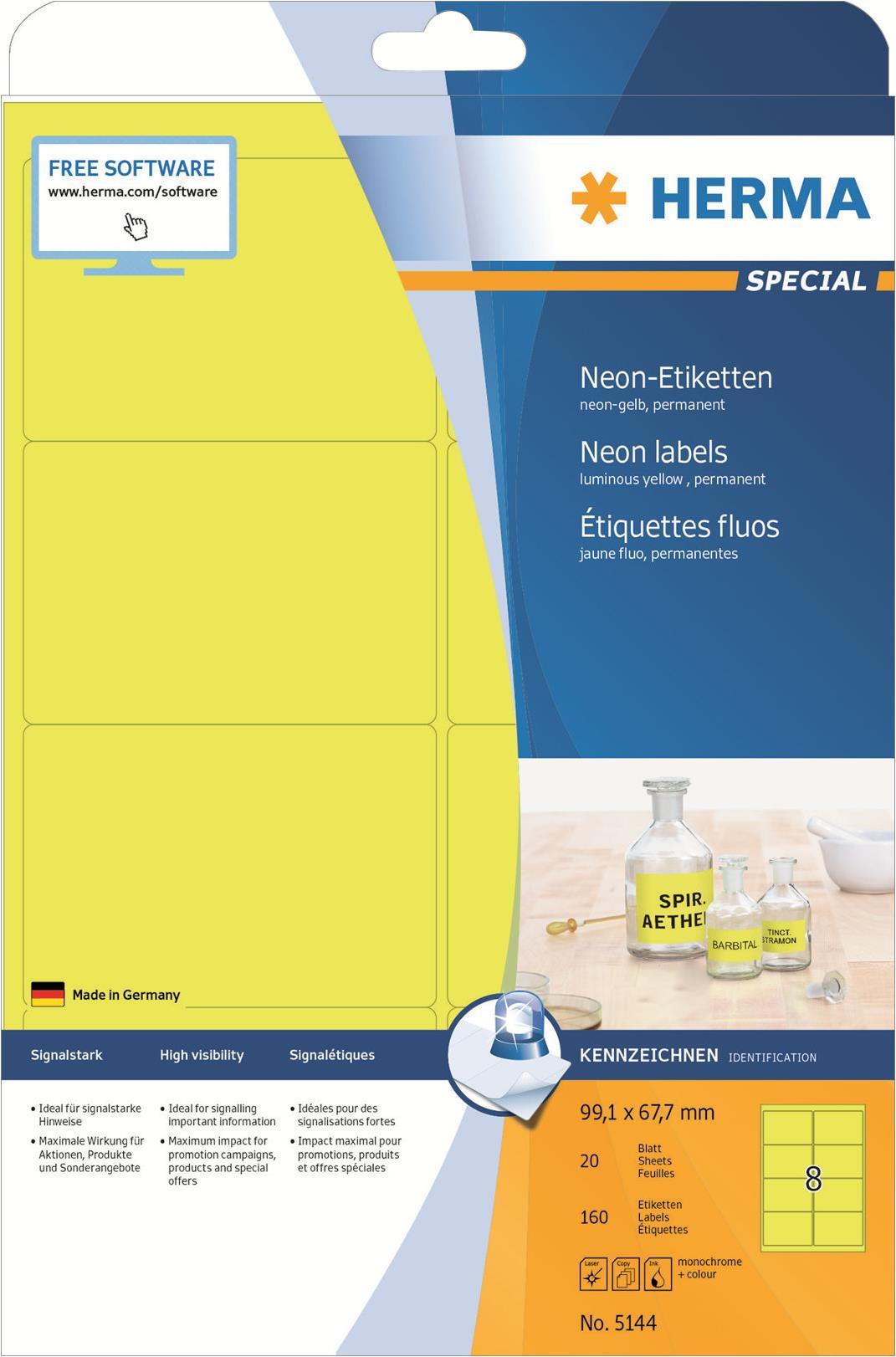 HERMA Special - Permanent self-adhesive matte fluorescent paper labels - Leuchtendes Gelb - 99,1 x 67,7 mm - 160 Etikett(en) (20 Bogen x 8) (5144)