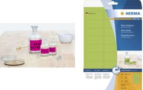 Etiketten in Neonfarben für Informationen mit Signalwirkung, auf A4-Blättern, selbstklebend. Auffallend und informativ: ideal für Kennzeichnungen mit Signalcharakter, z. B. Warnhinweise, Eilvermerke, Aktionen, Farbcodierungen,... In 4 signalstarken Neonfarben, FSC Mix Credit-zertifiziert. Für Laser- und Inkjetdrucker, Kopierer, Farblaserdrucker und Farbkopierer geeignet. Störungsfreie Verarbeitung durch Rundum-Sicherheitskante und optimale Planlage. Kostenlose Softwarelösungen: www.herma.de/software.