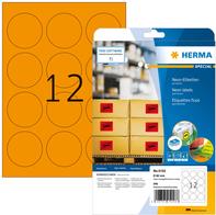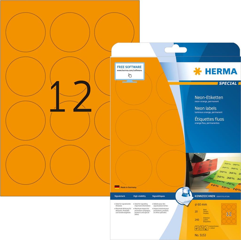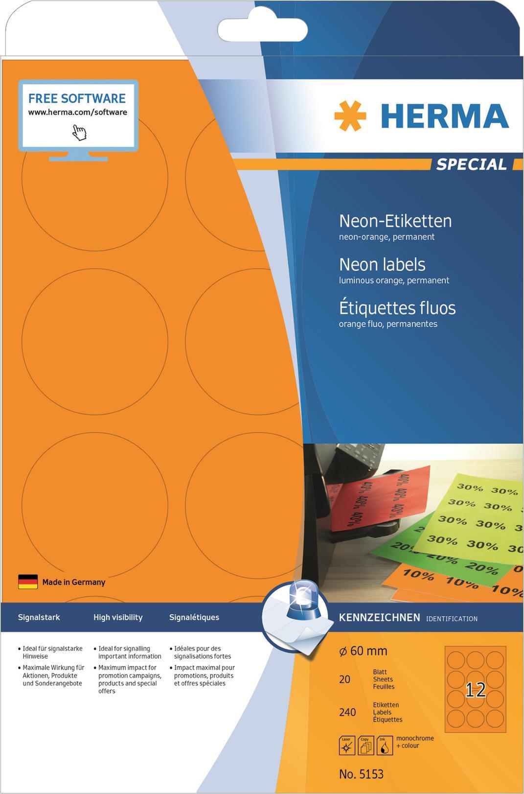 HERMA Special - Permanent selbstklebende, matte, fluoreszierende Papieretiketten - Luminous Orange - 60 mm rund - 240 Etikett(en) (20 Bogen x 12) (5153)