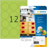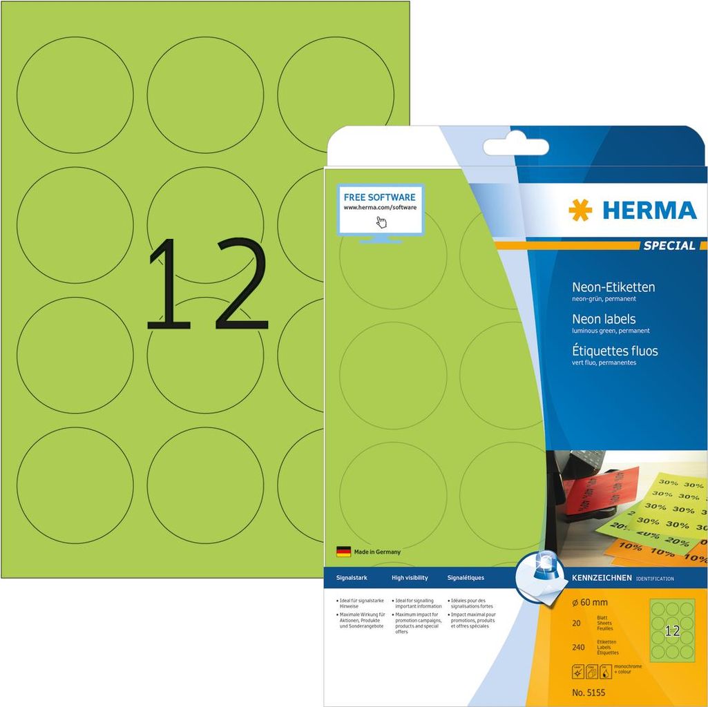 HERMA Special - Permanent self-adhesive matte fluorescent paper labels - Luminous Green - 60 mm rund - 240 Etikett(en) (20 Bogen x 12) (5155)