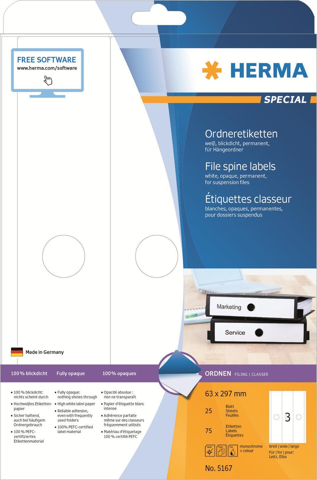 HERMA Special - Permanent self-adhesive matte opaque file folder paper labels - weiß - 63 x 297 mm - 75 Etikett(en) (25 Bogen x 3) (5167)