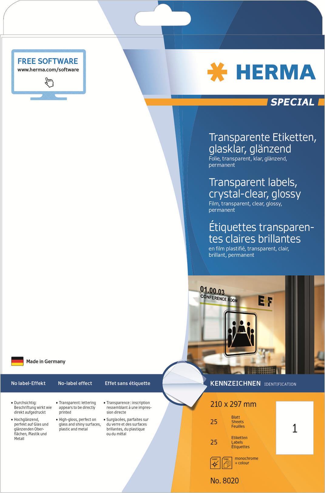 HERMA Special - Selbstklebende Glanzfolie - durchsichtig - A4 (210 x 297 mm) - 25 Stck. (8020)