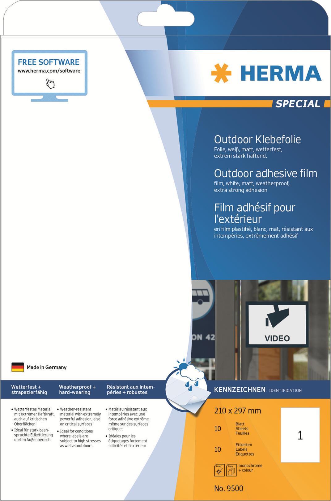 HERMA Special - Selbstklebende, matte Etiketten aus Polyethylen-Folie für den Außenbereich - weiß - A4 (210 x 297 mm) 10 Etikett(en) (9500)