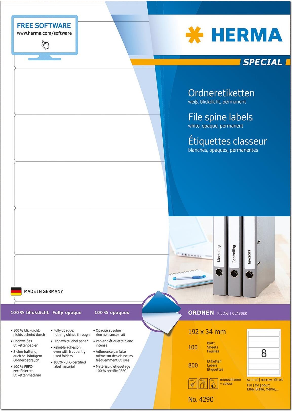 HERMA SuperPrint - Aktenetiketten (File Folder Labels) - weiß - 34 x 192 mm - 800 Stck. (100 Bogen x 8) (4290)