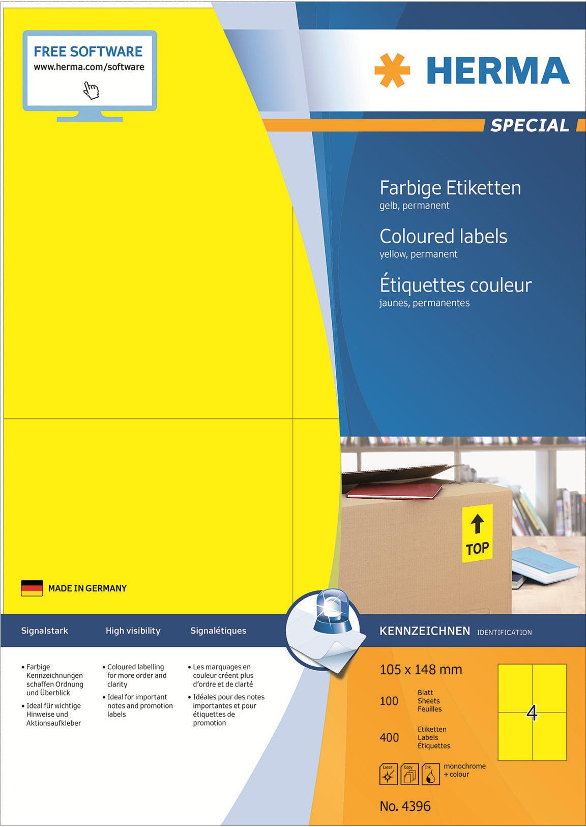 HERMA SuperPrint - Selbstklebende Etiketten - Gelb - A6 (105 x 148 mm) - 400 Stck. (4396)