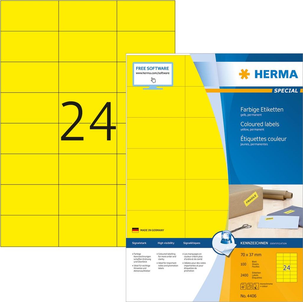 HERMA SuperPrint - Selbstklebende Etiketten - Gelb - 37 x 70 mm - 100 Stck. (4406)