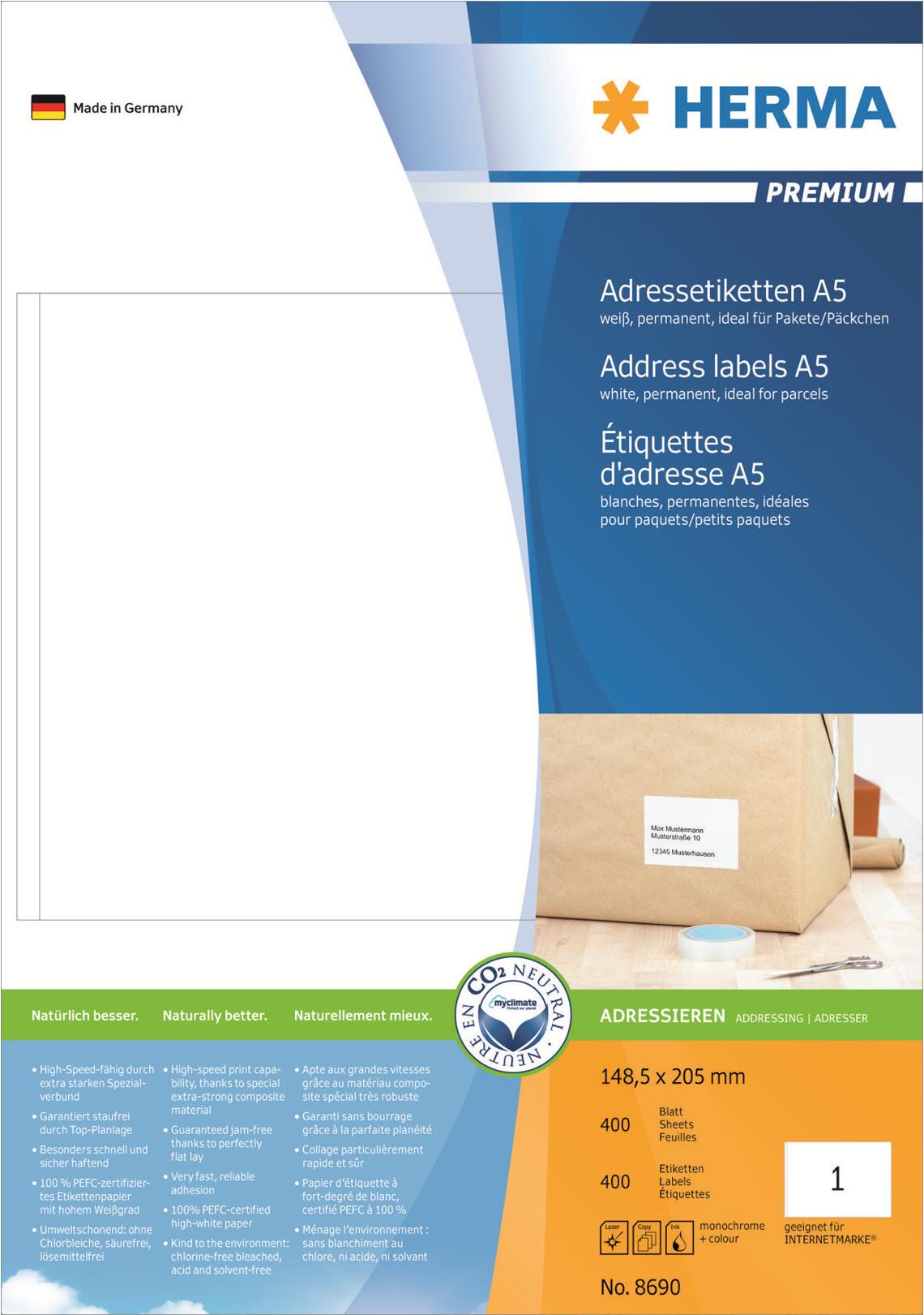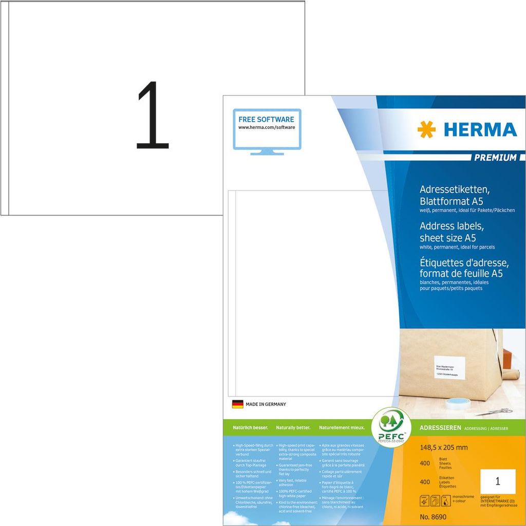 HERMA SuperPrint - Adressetiketten - weiß - 148,5 x 205 mm - 400 Stck. (400 Bogen x 1) (8690)