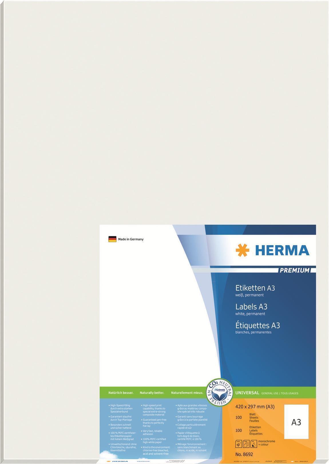 HERMA Premium - Permanenter Klebstoff - weiß - A3 (297 x 420 mm) 100 Stck. (100 Bogen x 1) Etiketten