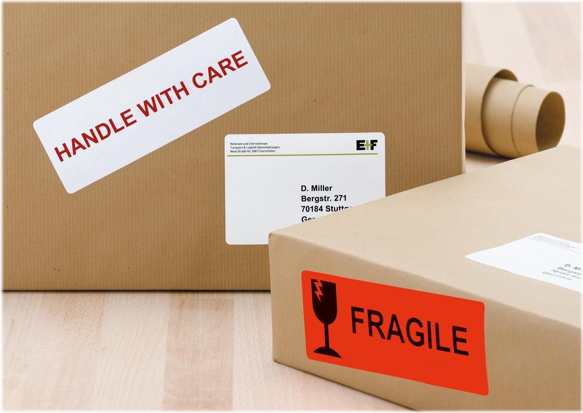 Permanent selbstklebende, matte Versand-/Warnhinweisetiketten aus Papier |