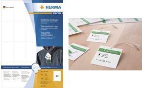 Etiketten aus stabilem Papier/Folie/Papier-Verbund, auf A4-Blättern, nicht klebend. Ideal für Produkt- und Preisauszeichnung, z.B. an Textilien oder Stoffballen oder als Colli-Anhänger. Mit vorgestanzter Lochung für die Befestigung mit Etikettierpistolen, Nylon/Faden, Draht, Schnur oder Fäden/Splinte. Einfach und schnell trennbar durch Mikroperforation. Für Laser- und Inkjetdrucker, Kopierer, Farblaserdrucker und Farbkopierer, beidseitig bedruckbar, oder zur Handbeschriftung. Kostenlose Softwarelösungen: www.herma.de/software.