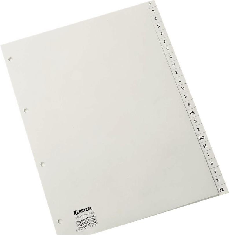 Diese Kunststoffregister mit alphabetischer Einteilung sind in einer Auswahl von Größen erhältlich. Die vorgestanzten Blätter mit weißen Taben bestehen aus robustem Polypropylen.