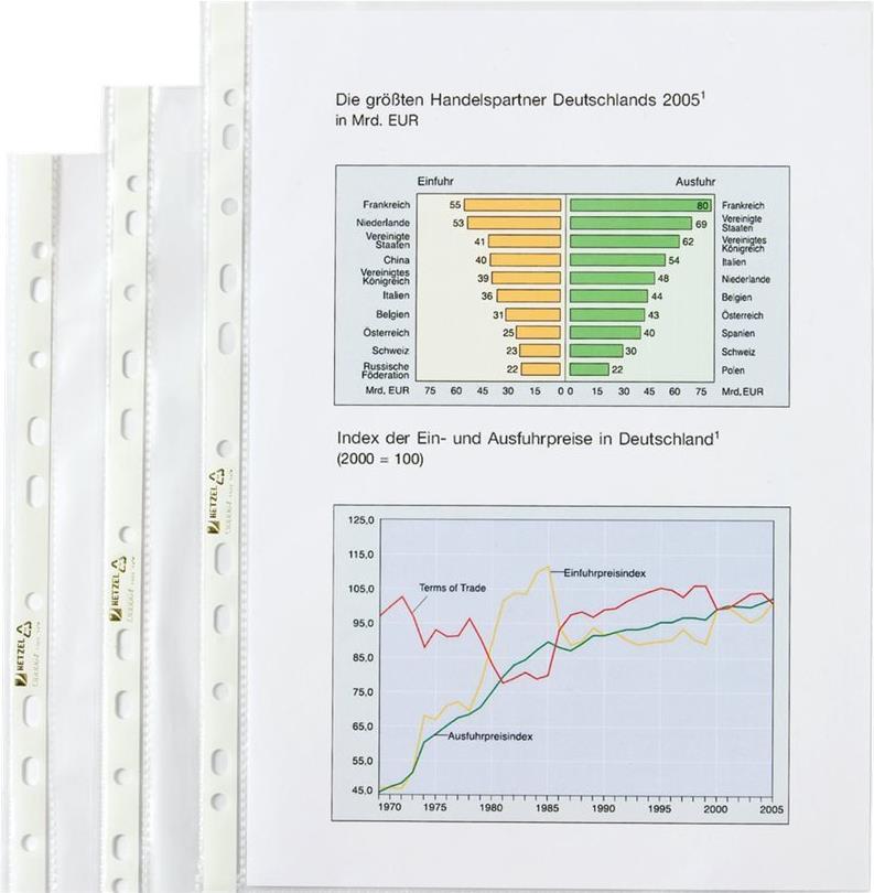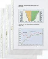 Rexel Premium-Prospekthüllen sind in einer Auswahl von Größen mit genarbter oder kristallklarer Oberfläche erhältlich. Sie haben eine offene Oberkante sowie einen verstärkten Lochstreifen. Dank ihrer hohen Qualität bieten sie lange Haltbarkeit selbst bei häufigem Gebrauch perfekt für die Präsentation und Auslage wichtiger Dokumente.