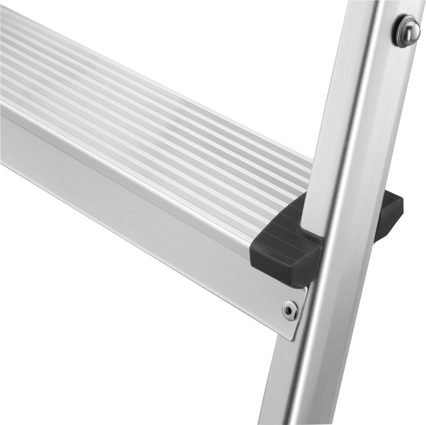 Alles hat eine gute Seite - nur diese Leiter hat zwei. Denn diese Doppelstufenleiter ist von beiden Seiten besteigbar. Sie sparen Zeit, da Sie die Leiter nicht ständig neu umstellen müssen. Und in der Bockstellung - ein Bein auf jeder Seite der Leiter - haben Sie nicht nur beide Hände frei, sondern genießen gleichzeitig eine größere Bewegungsfreiheit in beide Richtungen. Dabei steht die Leiter besonders rutschfest - dank der stabilen Konstruktion.Beschreibung