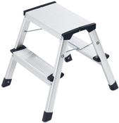 Alu-Klapptritt L90Der Alu-Klapptritt zum Steigen und Sitzen. Mit Klappsperre.Ausstattung: Praktischer Doppelstufen-KlapptrittBreite und tiefe geriffelte Alu-StufenGeriffelter SteckfußPlatzsparend zusammenklappbarBelastbar bis 150 kg.Technische Daten: Anzahl Sprossen/Stufen: 2 x 2Arbeitshöhe (max.): 2.15 mAusführungen (Leiter): Doppel-Klapp-TrittBelastbar bis Gewicht: 150 kgFarbe: Silber,SchwarzGewicht: 1.9 kgMaterial: AluminiumStandhöhe (max.): 40 cmZulassungen, Normen: EN 14183