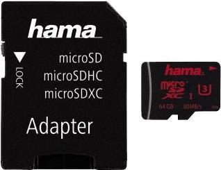 Hama - Flash-Speicherkarte (microSDXC-an-SD-Adapter inbegriffen) - 64GB - UHS Class 3 - microSDXC UHS-I (123979)