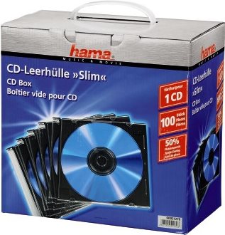 - 100 SlimBox-Leerhüllen im Karton mit Tragegriff.