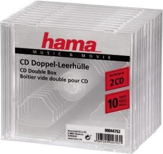 Hama CD Double Jewel Case - Behälter CD-Aufbewahrung - Kapazität: 2 CD - durchsichtig (Packung mit 10) (00044753)