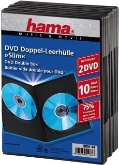 Hama DVD-ROM Slim Double Box - Slim Jewel Case für Speicher-DVD - Kapazität: 2 DVD - Schwarz (Packung mit 10) (51184)