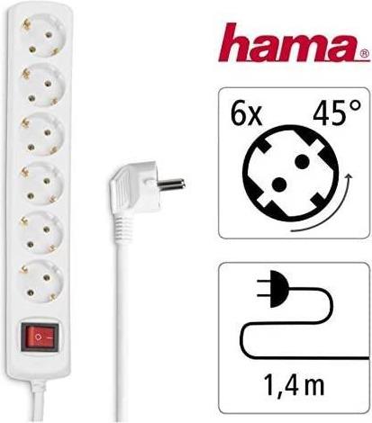 Hama Distribution Panel 6-Way 45° with Switch - Verlängerungsschnur - Wechselstrom 230 V - Ausgangsbuchsen: 6 - 1.4 m - weiß