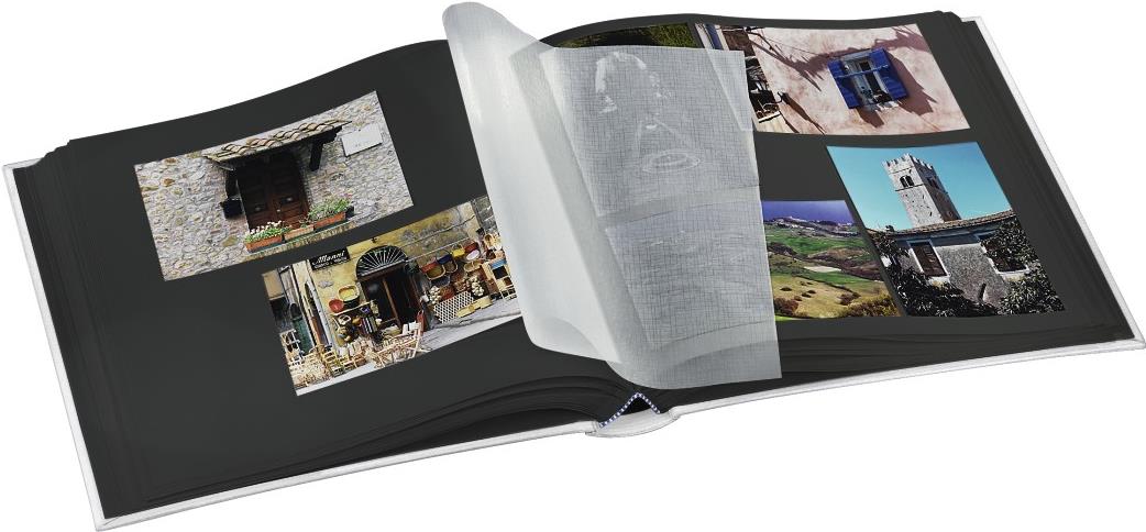 Innenseiten aus schwarzem Fotokarton, die viel Platz zur individuellen Gestaltung von Fotos und vielen ...