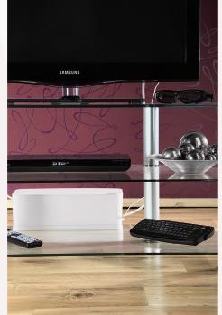- Kunststoffbox mit beidseitigen Kabelschlitzen für einfaches Verstauen