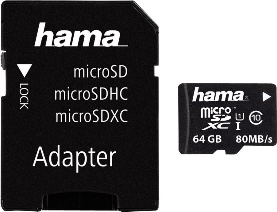 Hama microSDXC 64GB Class 10 UHS-I 80MB/s + Adapte (00124140)