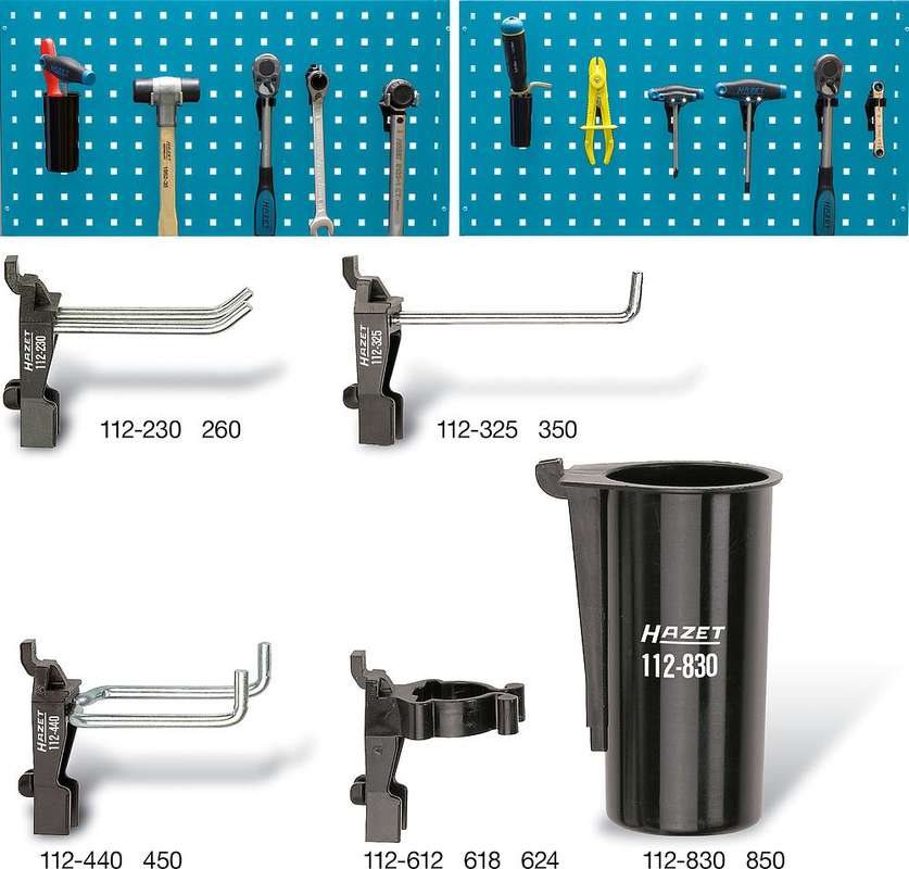 HAZET 112/11 - Hakenwerkzeughalter - Datei - Hammer - Handsäge - Innensechskantschlüssel - Rohrhalterung - Zange - Scheren,... - Schwarz - Silber - 11 Stück(e) - 220 g (112/11)