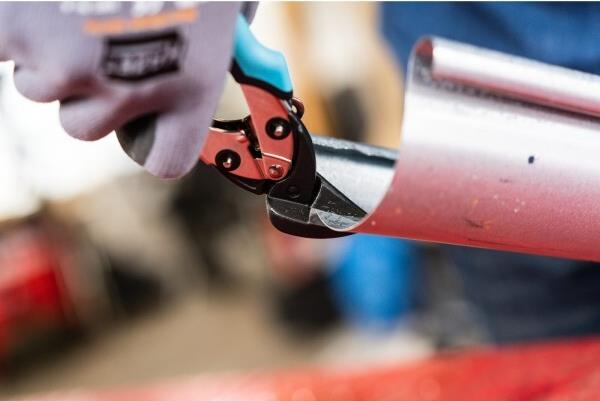 Karosserie-BlechschereKompakte Ausführung für Arbeiten auf engstem Raum und mit kleinsten Konturen.Für durchlaufende gerade und Figurenschnitte.Durch neue Scherenkopfgeometrie hervorragend für besonders kleine Radien und schwer zugängliche Stellen.Perfektes Hebelverhältnis bei kleinster Bauweise garantiert optimale Leistung bei geringem Kraftaufwand.Ergonomischer Griff für ermüdungsfreies Arbeiten.Scherenkopf im Gesenk geschmiedet.Für Blechstärke bis 1,2 mm (600N/mm2).Schneidenlänge 20mm.Rechtsschneidend.
