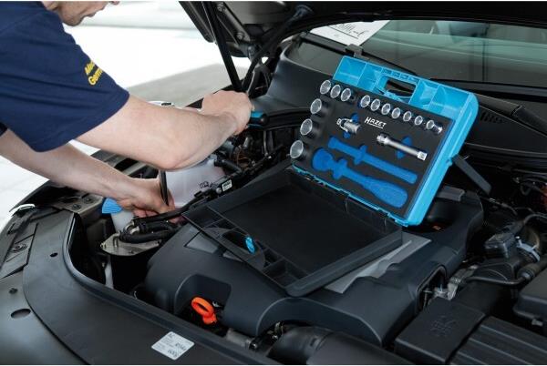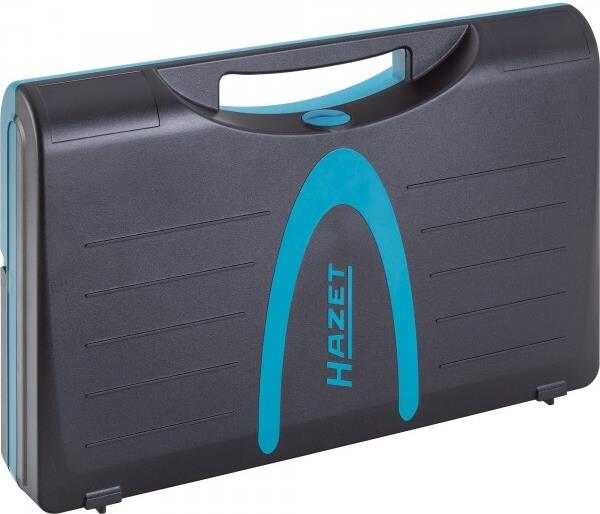 SmartCase-WerkzeugkastenModernes zweifarbiges Design HAZET-BLAU® / schwarz.Mit Aufstellfunktion für schnellen und ergonomischen Werkzeugzugriff.Deckel als Ablagefläche für entnommene Werkzeuge oder Kleinteile nutzbar.Robuster ABS-Kunststoff. Made In Germany.SmartCase Werkzeugkoffer, leer, 355 x 231 x 65 mm.Passend für alle 1/3 Safety-Insert-System 2-Komponenten-Weichschaum-Einlagen aus dem HAZET-Programm.Mit Tragegriff.