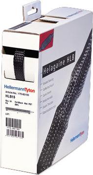 Helagaine HLBHelagaine HLB deckt mit nur drei Größen einen vielseitigen Anwendungsbereich von 5 mm bis 54 mm Ø ab. Helagaine HLB ist ein Polyestergeflechtschlauch, der sich durch die hohe Aufweitrate von mindestens 3:1 auszeichnet. So lassen sich große Ø-Differenzen einfach überbrücken, wie z.B. bei Steckern. Die Schläuche werden als 10 m Rollen in praktischen Spenderboxen geliefert, die so für eine ordentliche Aufbewahrung sorgen und das Verschmutzen des Geflechtschlauches verhindern. Das problemlose Herausziehen des Schlauches aus der Spenderöffnung ist gewährleistet.Anwendungen:Die praktische Spenderbox und das übersichtliche Sortiment mit seinen großen Anwendungsmöglichkeiten machen Helagaine HLB zum idealen Partner sowohl im Profi- als auch im Homebereich. So lassen sich z.B. Leitungen von HiFi- Anlagen, Präsentations-Equipment oder Kabelstränge von Industrieanlagen bündeln. Neben einer sauberen Optik werden die Leitungen durch Helagaine HLB auch vor Abrieb geschützt.Technische Daten: Bündelbereich-Ø: 18 - 54 mmFarbe: SchwarzHalogenfrei: JaHerst.-Teilenr.: 170-80350Inhalt: 10 mMaterial: Polyester (PET)Produktabmessung, Ø: 35 mmTyp: HLB35Typ (Hersteller-Typ): HLB35-PET-BKWeitere technische Daten: Sauerstoffindex: 34 % (NF G 07-128)