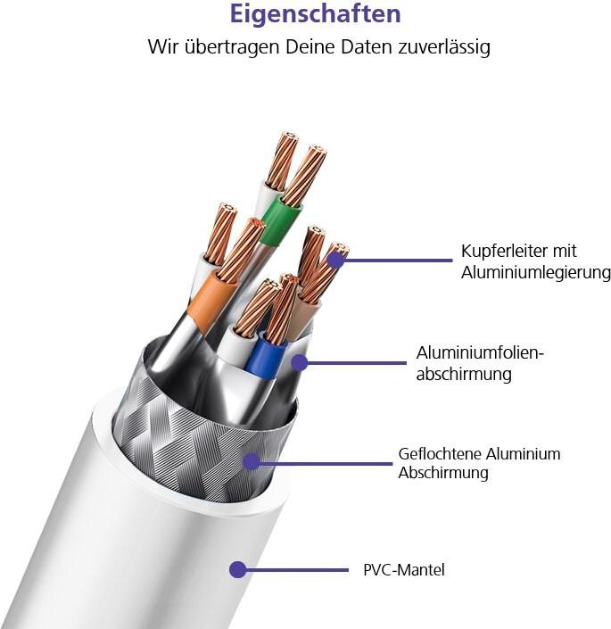 | Leistungsmerkmale | besonders schmaler Knickschutz (ideal bei hoher Packungsdichte) bis 10 Gbit geeignet für PoE (Power over Ethernet) geeignet Gesamtabschirmung Geflechtschirm Halogenfrei mit Längenangabe auf der Knickschutztülle Mit Rastnasenschutz Paare in Folie geschirmt |