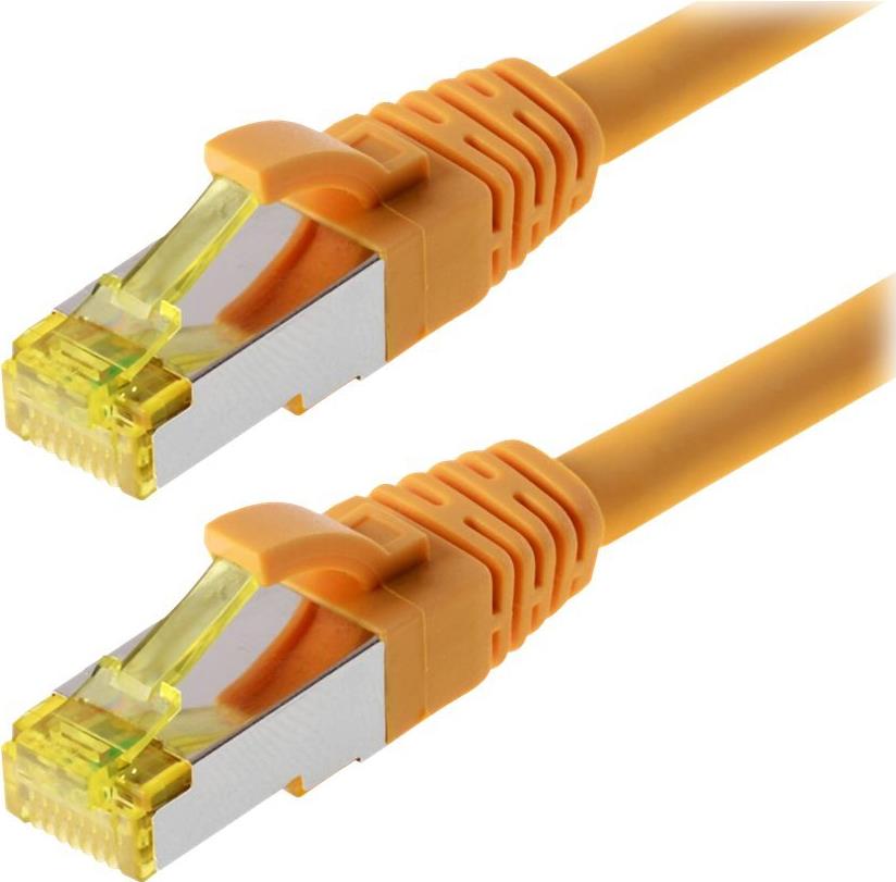 Helos Patchkabel S/FTP Cat 6a gelb 1,0m - Twisted Pair, doppelt geschirmt, 4 x 2 x AWG 27 - Vollkupfer Patchkabel mit schmalem Knickschutz inkl. Längenbezeichnung - PimF geschirmte Cat6a Kabel, halogenfrei, 10GBE geeignet - PoE- und PoE plus-fähig - halogenfreier LSZH-Mantel - 1:1 Belegung nach EIA/TIA 568B - umweltfreundliche Umverpackung (118100)