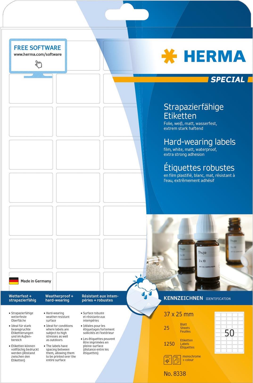 HERMA Special - Film labels - matte - self-adhesive - weiß - 37 x 25 mm 1250 Etikett(en) (25 Bogen x 50) (8338)