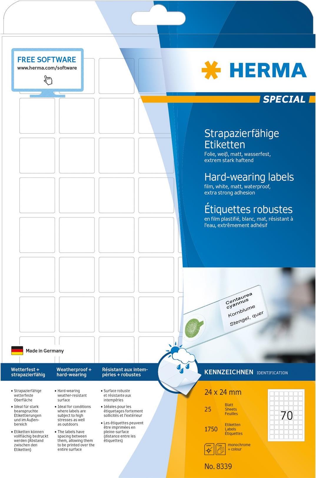 HERMA Special - Film labels - matte - self-adhesive - weiß - 24 x 24 mm 1750 Etikett(en) (25 Bogen x 70) (8339)