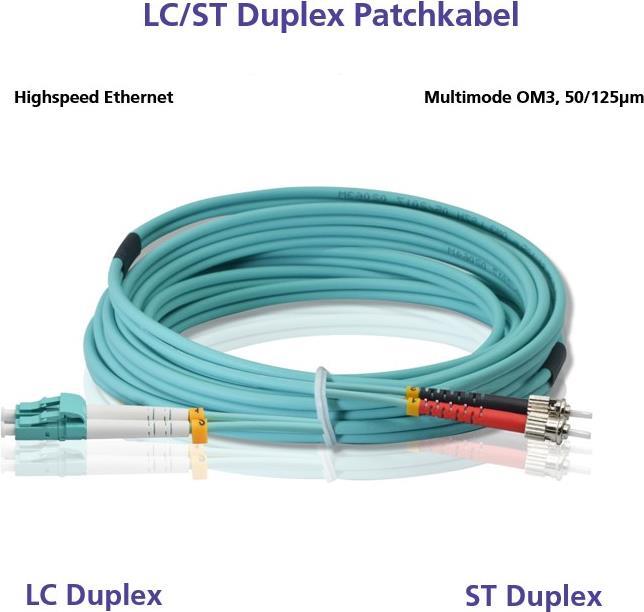 Helos - Patch-Kabel - ST multi-mode (M) zu LC Multi-Mode (M) - 2 m - Glasfaser - Duplex - 50/125 Mikrometer - OM3 - Aquamarin