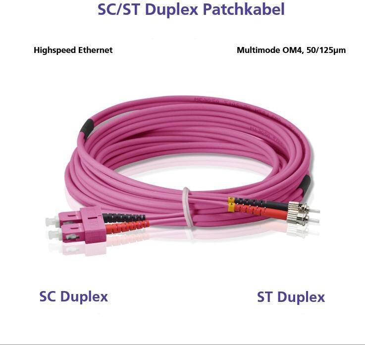 helos LWL Patchkabel 50/125µm OM4 SC/ST 3,0m SC Duplex Stecker/2x ST Stecker, erika-violett (126437)