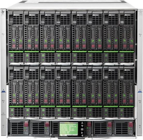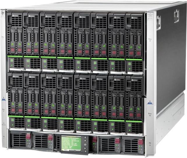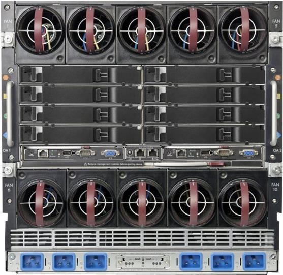 Das BladeSystem c7000 Gehäuse umfasst die gesamte Stromversorgungs-, Kühlungs- und I/O-Infrastruktur, die nötig ist, um modulare Server-, Verbindungs- und Speicherkomponenten heute und in Zukunft zu unterstützen. Das Gehäuse ist 10U hoch und bietet Platz für bis zu 16 Server- und/oder Speicher-Blades sowie optionale redundante Netzwerk- und Speicherverbindungsmodule. Es umfasst eine gemeinsam genutzte NonStop Hochgeschwindigkeits-ProLiant mit 7,1 Tbit/s, mit der Sie Server-Blades nur einmal verkabeln müssen, um sie an das Netzwerk und den gemeinsamen Speicher anzuschließen. Die Stromversorgung erfolgt über eine Backplane mit gebündelter Verkabelung. Die Wahlmöglichkeit zwischen Einphasen-Wechselspannung, Dreiphasen-Wechselspannung, -48 V Gleichstrom und Hochspannungs-Gleichstromanschluss sorgt für Flexibilität bei der Eingangsleistung.