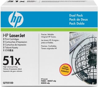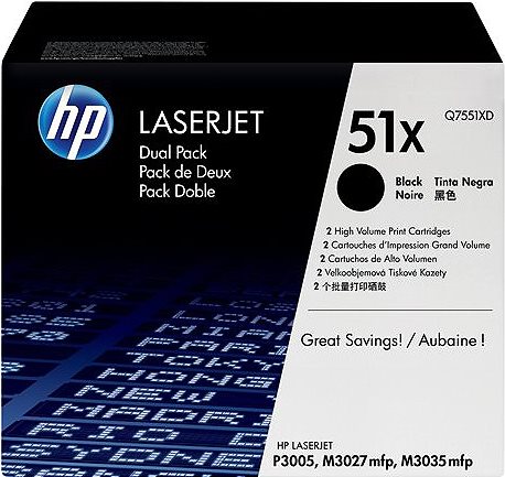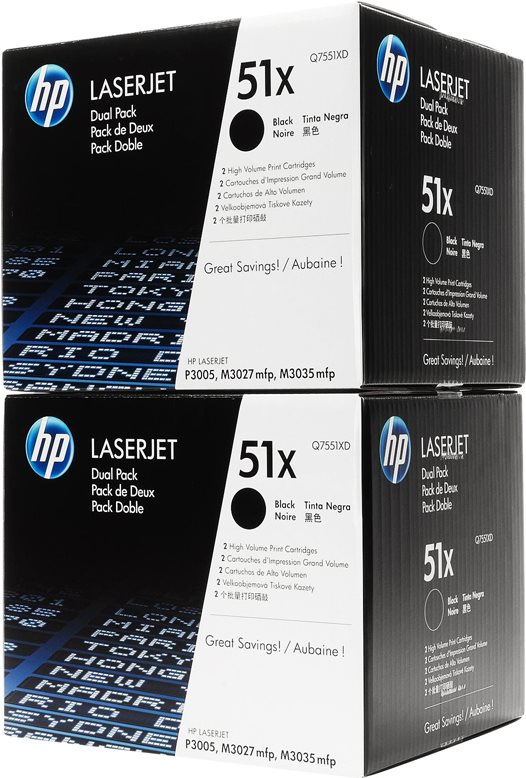 HP 51X - 2er-Pack - Hohe Ergiebigkeit - Schwarz - original - LaserJet - Tonerpatrone (Q7551XD) - für LaserJet M3027, M3027x, M3035, M3035xs, P3005, P3005d, P3005dn, P3005n, P3005x (Q7551XD)