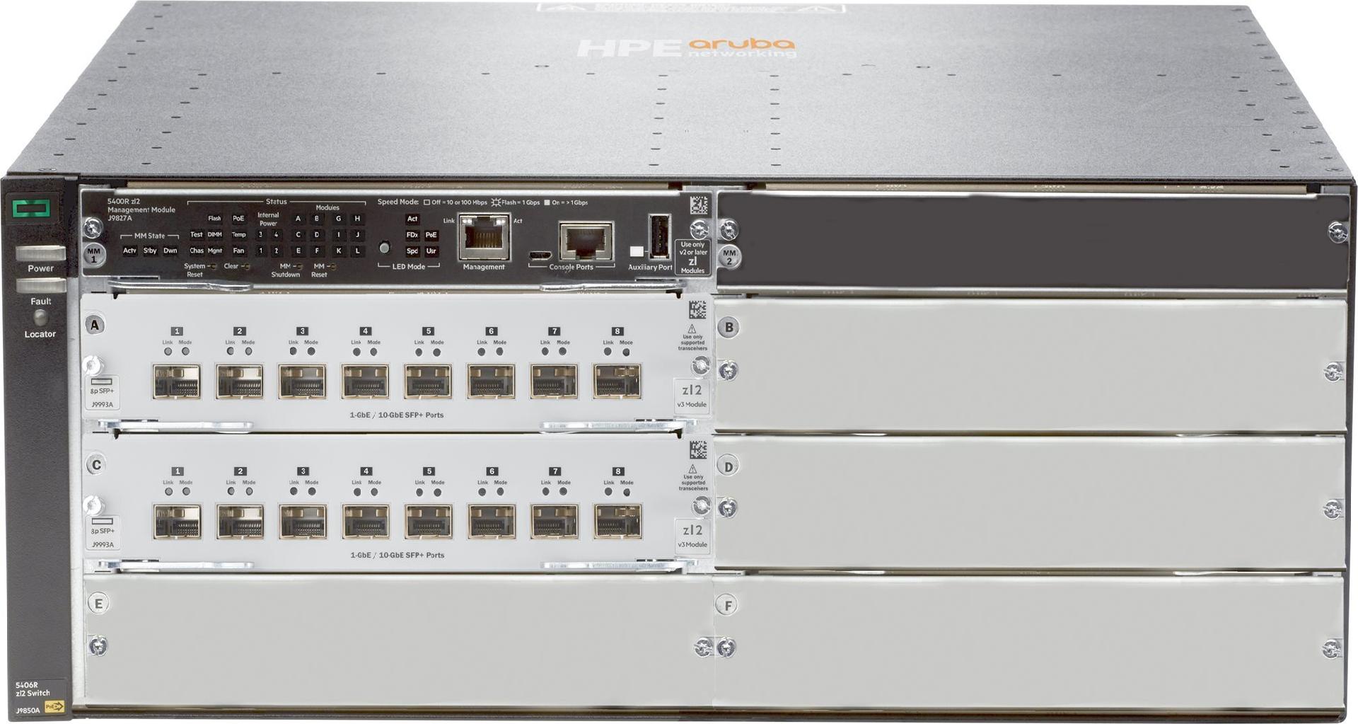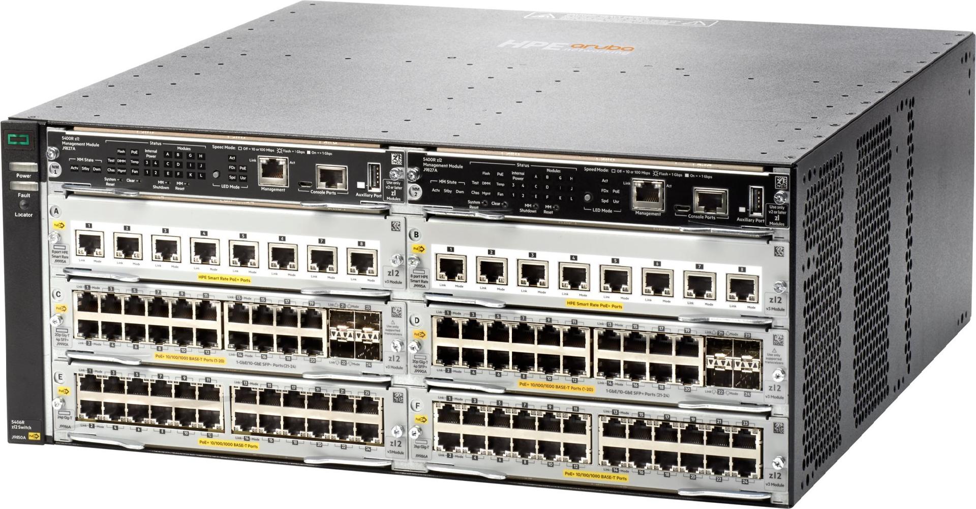 Die HPE Aruba Networking 5400R zl2 Switch-Serie liefert eine Ausfallsicherheit der Enterprise-Class und bahnbrechende Flexibilität für Mobile First-Netzwerke. Der hochentwickelte modulare Layer-3-Switch liefert skalierbare Aggregation mit HPE Smart Rate-Multi-Gigabit-Ports für 802.11ac-Hochgeschwindigkeitsgeräte, verfügt über Dynamic Segmentation, Virtual Switching Framework (VSF) Stacking-Technologie, Hitless-Failover, 40 GbE Leitungsgeschwindigkeit, robuste Servicequalität u. -sicherheit und erfordert keine Softwarelizenz. Die 5400R zl2 Serie lässt sich durch erweiterte Tools für Sicherheit und Netzwerkmanagement Tools wie HPE Aruba Networking ClearPass Policy Manager, HPE Aruba Networking AirWave und das Cloud-basierte Aruba Central einfach bereitstellen und verwalten.