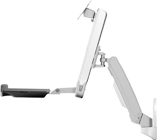 Die IB-MS600-W ist drehbar und der Arm kann samt Monitor in unterschiedlichen Winkeln geneigt werden, sogar eine 360° Drehung ist möglich. Wenn man etwas Platz sparen möchte, kann auch die Tastaturablage hochgeklappt werden.