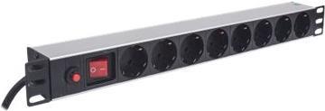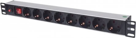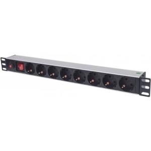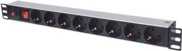 Intellinet 48,30cm (19") 1U Rackmount 8-Way Power Strip - German Type, With On/Off Switch and Overload Protection, 3m Power Cord - Steckdosenleiste |