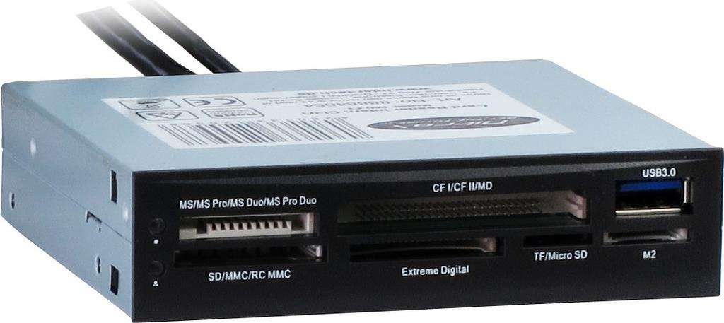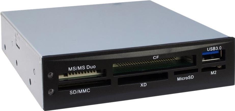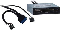 Sie benötigen lediglich einen freien 3.5" Schacht um ihren PC um eine praktische Komponente zu erweitern. Der CI-01 kann fast alle derzeit gängigen Speicherkarten lesen und deren Daten per USB 2.0, mit einer maximalen Datentransferrate von 480Mbit/s übertragen. Der eingebaute USB 3.0 Anschluss bietet zudem die Möglichkeit mit 5 Gbit/s Daten, z.B. von Wechseldatenträgern, zu übertragen. Der Anschluss erfolgt über einen internen 19pin USB 3.0 Pfostenstecker.