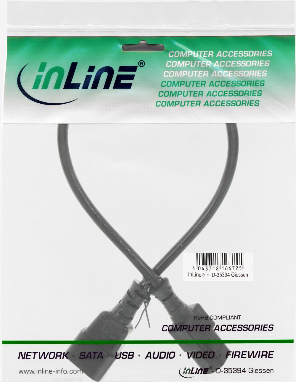 INLINE - Spannungsversorgungs-Verlängerungskabel - IEC 320 EN 60320 C13 - IEC 320 EN 60320 C13 - 50cm - Schwarz (16605)