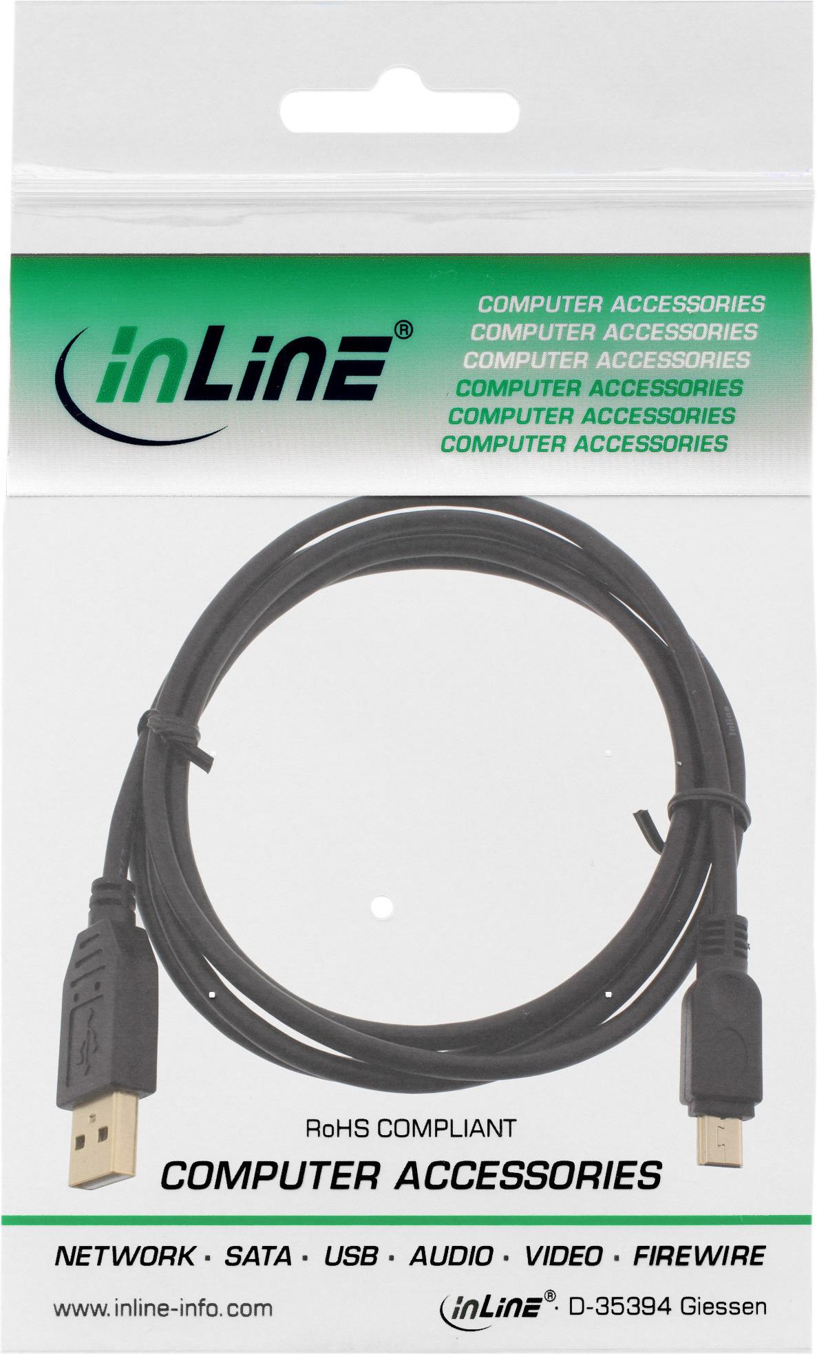 InLine® USB 2.0 Mini-Kabel, USB A Stecker an Mini Stecker (5pol.), schwarz, vergoldete Kontakte, 2m (31820P)