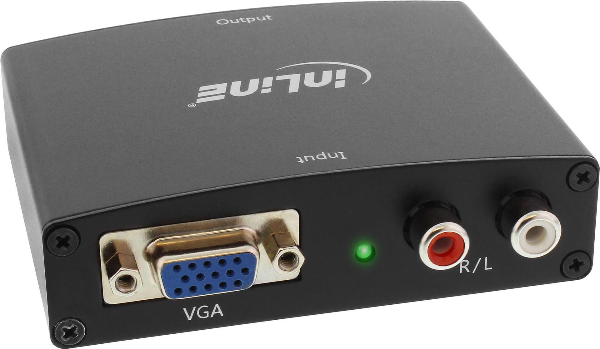 • Eingang: VGA Buchse 15-polig und 2x Cinch Buchsen (rot/weiß), Ausgang HDMI Buchse Typ A