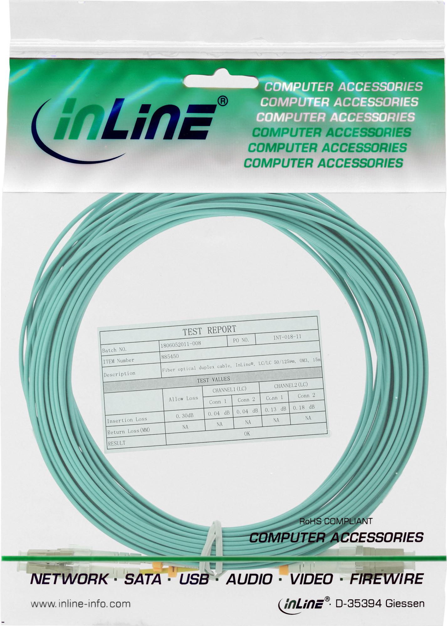 INLINE - Patch-Kabel - LC Multi-Mode (M) bis LC Multi-Mode (M) - 20 m - Glasfaser - 50/125 Mikrometer - OM3 - halogenfrei - Türkis
