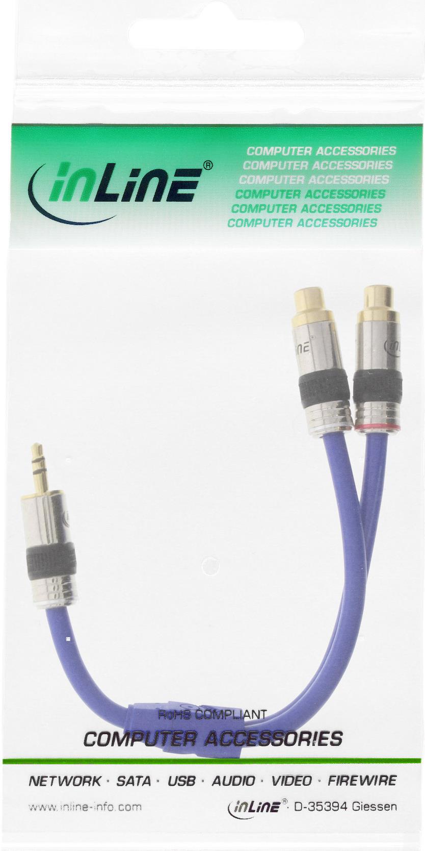 INLINE Klinke/Cinch PREMIUM 0,25m 3,5mm Klinke Stecker an 2x Cinch Buchse vergoldete Kontakte Laenge 0,25m (89941P)