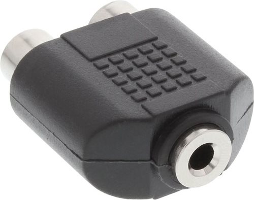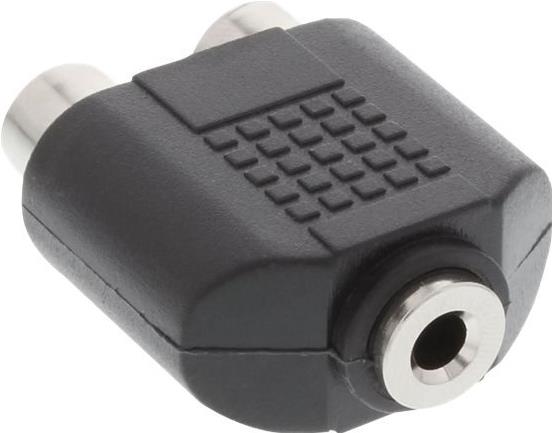 Audioadapter zum Adaptieren von Audiosignalen• 1x 3,5mm Klinke Buchse Mono an 2x Cinch Buchse• Farbe: Schwarz• vernickelte Kontakte