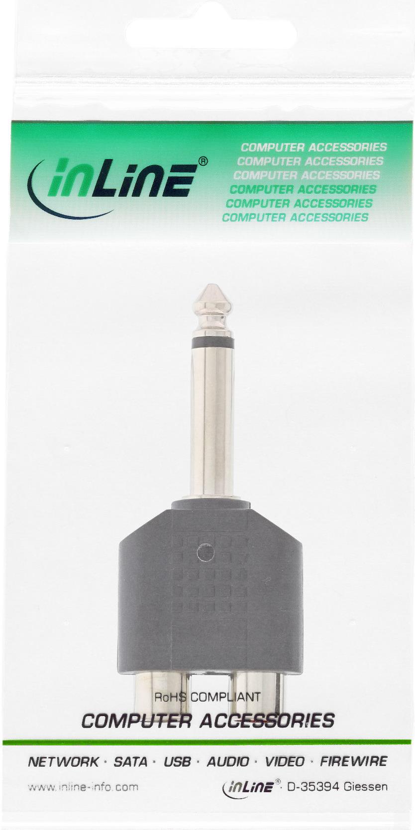 InLine® Audio Adapter, 6,3mm Klinke Stecker Mono an 2x Cinch Buchse (99339)