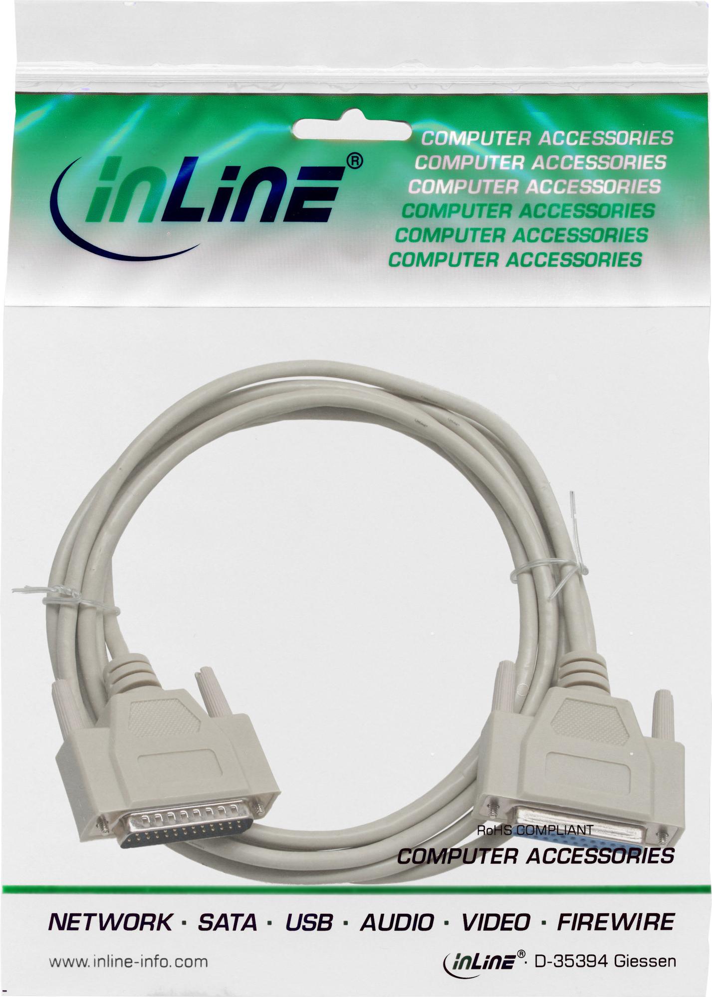 InLine® Serielle Verlängerung, 25pol St/Bu vergossen, 1:1 belegt, 30m (11430M)